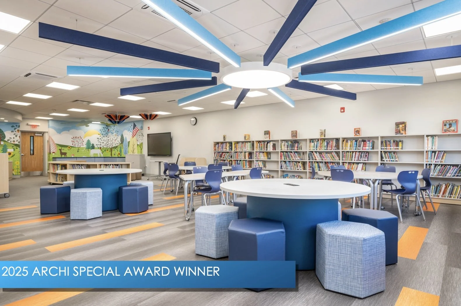 The Susan E. Wiley Library was awarded Best Use of Color, recognizing MDS Architecture’s evidence-based approach to creating environments that inspire learning. Studies show that color can shape mood, focus, and memory- critical elements in early education. Led by Irene Yim, the design team developed a palette that balances energy and calm, transforming the library into a welcoming, engaging space where students feel encouraged to explore and discover.