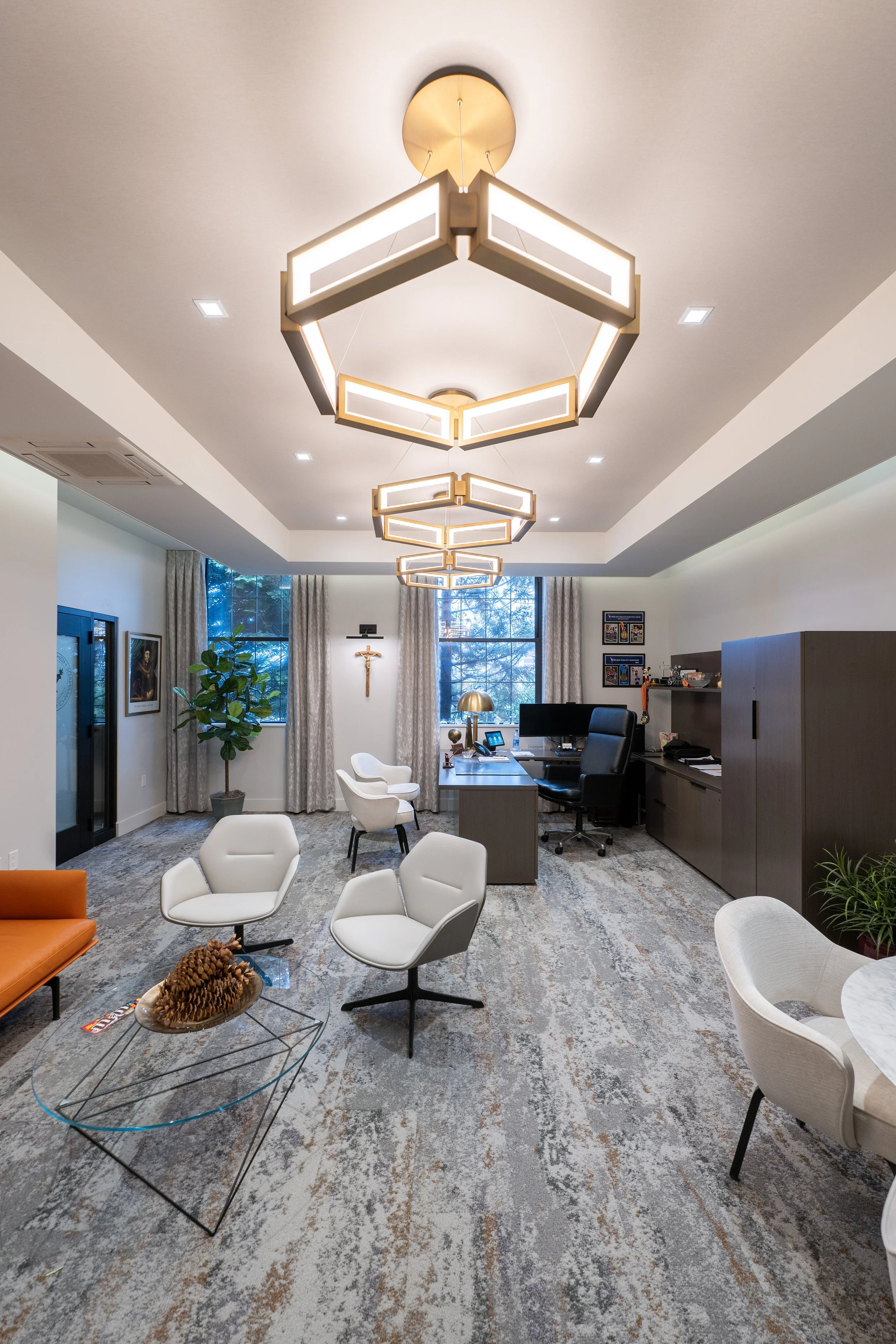 This newly renovated private office suite at Chaminade High School was designed to be both functional and welcoming—perfect for school leadership to work, meet, and connect. The goal was to create an office that feels polished and modern, while still reflecting the school’s Catholic values and strong sense of tradition. It’s an office that supports everything from day-to-day work to informal chats and leadership meetings.