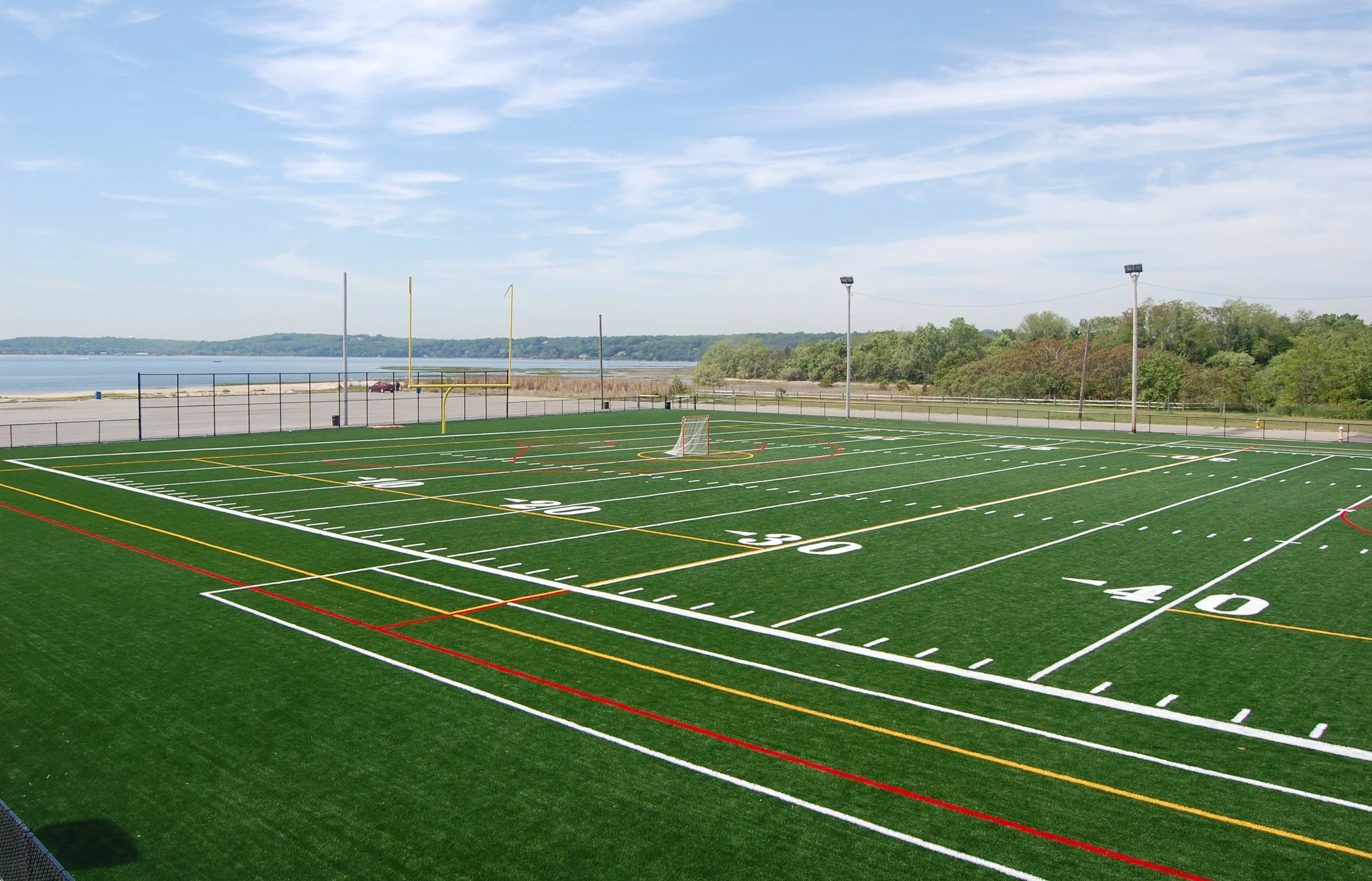 The multi-sport athletic field is the centerpiece of Centre Island Beach Park, designed to accommodate a variety of sports such as soccer, lacrosse, and recreational activities. The field offers a flexible, high-performance surface suitable for competitive games and casual play alike.
