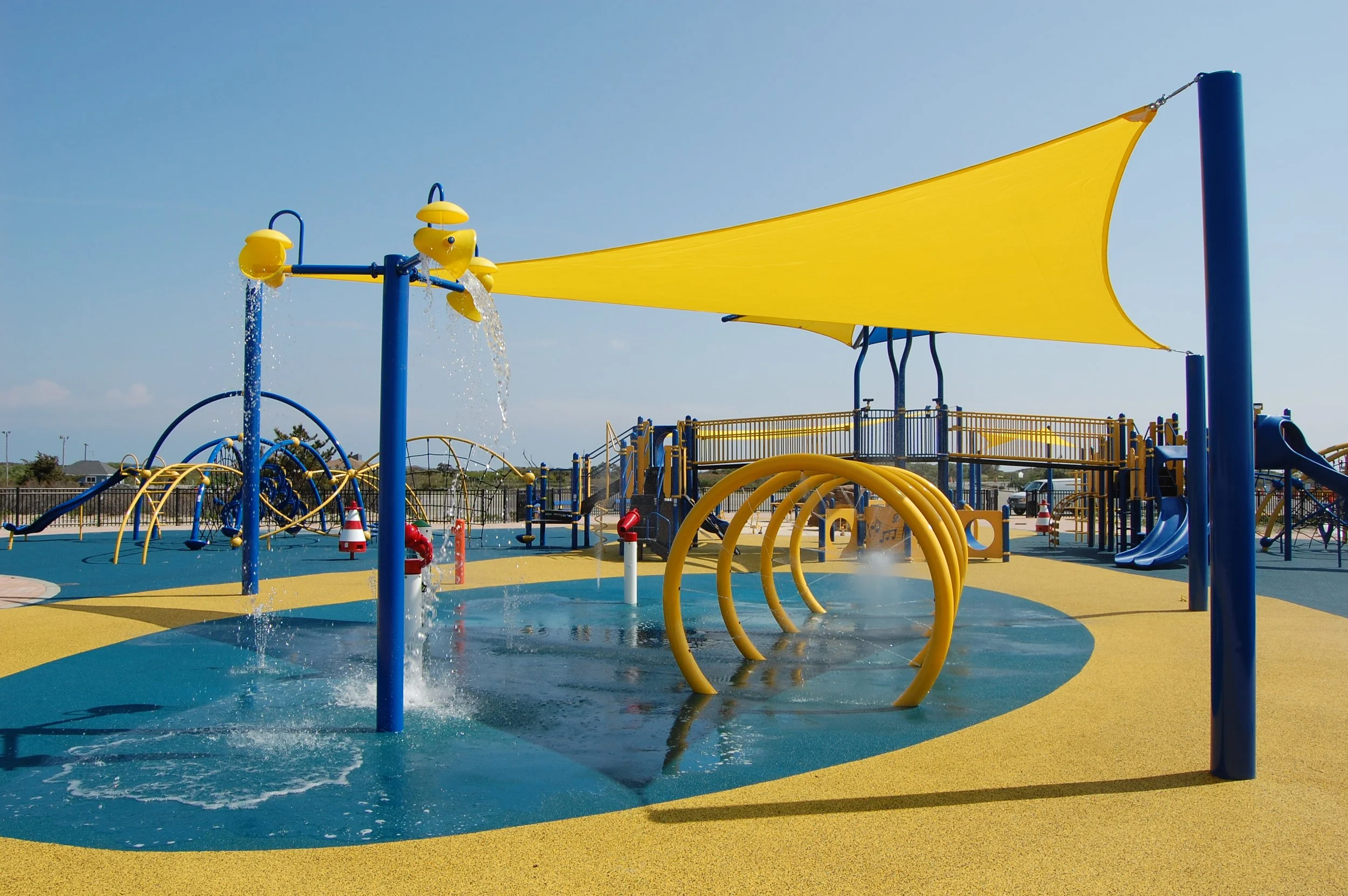 Interactive Spray Park Equipment: The spray park features a variety of interactive water elements designed to engage children and families in dynamic play. With motion-sensor-activated spray jets, water arches, and misting fountains, the design offers a wide range of water activities in a safe, shallow environment. The colorful water features are arranged in playful patterns that invite interaction, while the non-slip surfaces ensure safety.